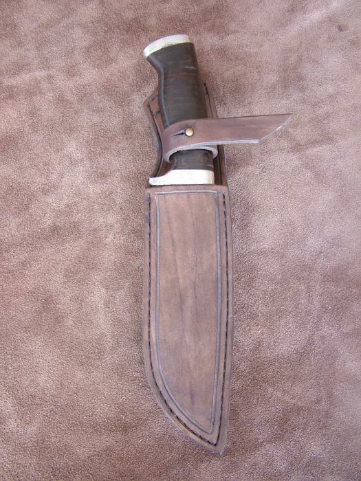 Ručně šité pouzdro z hovězí kůže.
