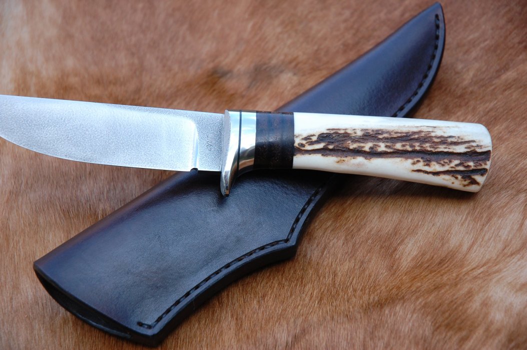 HANDLE MATERIAL: ANTLER AND LEATHER